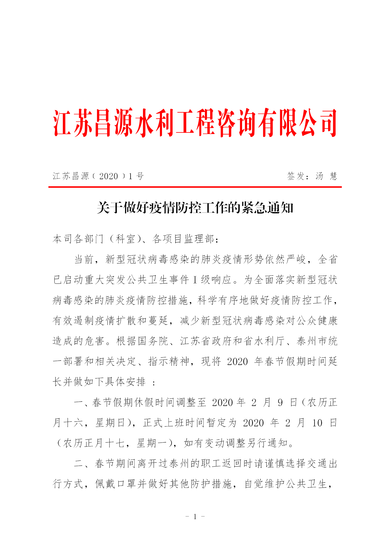 關(guān)于做好疫情防控工作的緊急通知(江蘇昌源﹝2020﹞1號(hào))